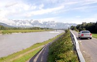 Švýcarsko, Lichtenštejnsko, Rakousko: Camping Klöntaler - pondělí 2. 7. 2007, den sedmý, 7.30, tachák 9.037 km. Pršelo snad celou noc a pořád (i přes den) jsme čekali, jestli náhodou nepřestane, a nepřestalo. Ve 12.30 jsme vyrazili na morálku kolem jezera, mnoho místa tam nebylo, tak akorát na silnici po jedné straně. Dominik nejel, tak sem se vracel. Fotil a jak se později ukázalo, tak tam ztratil nový švýcarák. Měl ho asi 24 hodin. Blížil se zase přívalový déšť, tak jsme zašli na nákup do vesnický samoobsluhy. U školky, ve vesele vymalovaném přístřešku pro kola, jsme jedli a čekali, až přestane pršet. O Švýcarsku se tvrdí, že je tam draho, není to žádná pravda přátelé, je to tam levnější jak v Rakousku. Služby jsou asi drahý, hotely - hospody, ale to jsme nepotřebovali, byli jsme totiž na ‘expedici’. Petr se rozhodl, že si to zkrátí a pojede zítra z Feldkirchu do Innsbrucku vlakem, proto že by chtěl (prý musí) být v sobotu doma. Jeli jsme podél jezer a dálnice, po cyklostezce, která vedla po staré cestě, kde se jezdilo, když byly koně a málo aut, na knížectví Lichtenštein, kam se nám pro neustálé zastavování (déšť) dorazit nepodařilo. Spíme na švýcarské straně hranice, pod střechou, na fotbalovém hřišti FC Trübbach, tímto všem z oddílu děkujeme. Jirka byl naštvaný, že někdo přijde a budeme se muset dohadovat. Řekl sem mu, ať se nebojí, že to vyřídím, ale nebyla to potřeba. Na stadionu voda z kohoutků a sucho, okolo jezdila auta, občas i vlak, ale je to tu lepší, než spát v kempu v mokrém spacáku a stanu. Když se začalo smrákat, tak nám pohybové čidlo nad hlavou rozsvítilo halogenové světlo. Vlezl sem kovářovi Petrovi na záda a na snímací čidlo navlékl návlek, co se natahuje na kolena, když je zima a byla tma. V noci začal foukat vítr, rozhýbal návlek a měli jsme ve 2 ráno ‘poplach’, protože čidlo sepnulo a halogen posvítil rovnou do odpočívajících spících očí. Dlouho jsme před tím nemohli usnout, protože po jídle jsme si uvařili hodně čaje a taky kafíčka. A to nás hrozně příjemně pobavilo. Ujeto v odpočinkovém tempu 62 km.