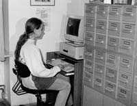 ve formě CD-ROM. I v oddělení pro děti a mládež je multimediální počítač,